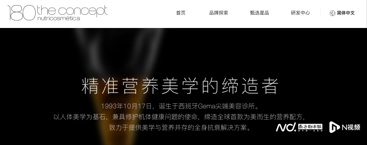 品牌官网及宣传材料显示,概念180自称“源自西班牙的高端口服抗衰品牌,拥有超过30年科研与市场积淀”,独创“六维营养定位体系”,宣称能“以科学视角精准解析衰老根源,融合美学与营养提供全面抗衰解决方案”。