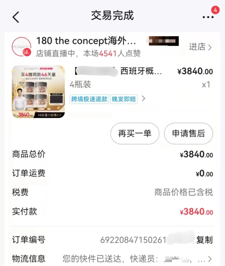 社交平台上,多位消费者反馈服用数月后毫无效果,甚至有消费者出现严重不良反应。消费者李女士向南都N视频记者讲述,她于2025年在线上购物平台“180theconcept海外旗舰店”花费3840元购买了4瓶“西班牙概念180”抗衰胶囊,收货后发现部分胶囊发黄甚至内部发黑,食用后全身发红发痒。